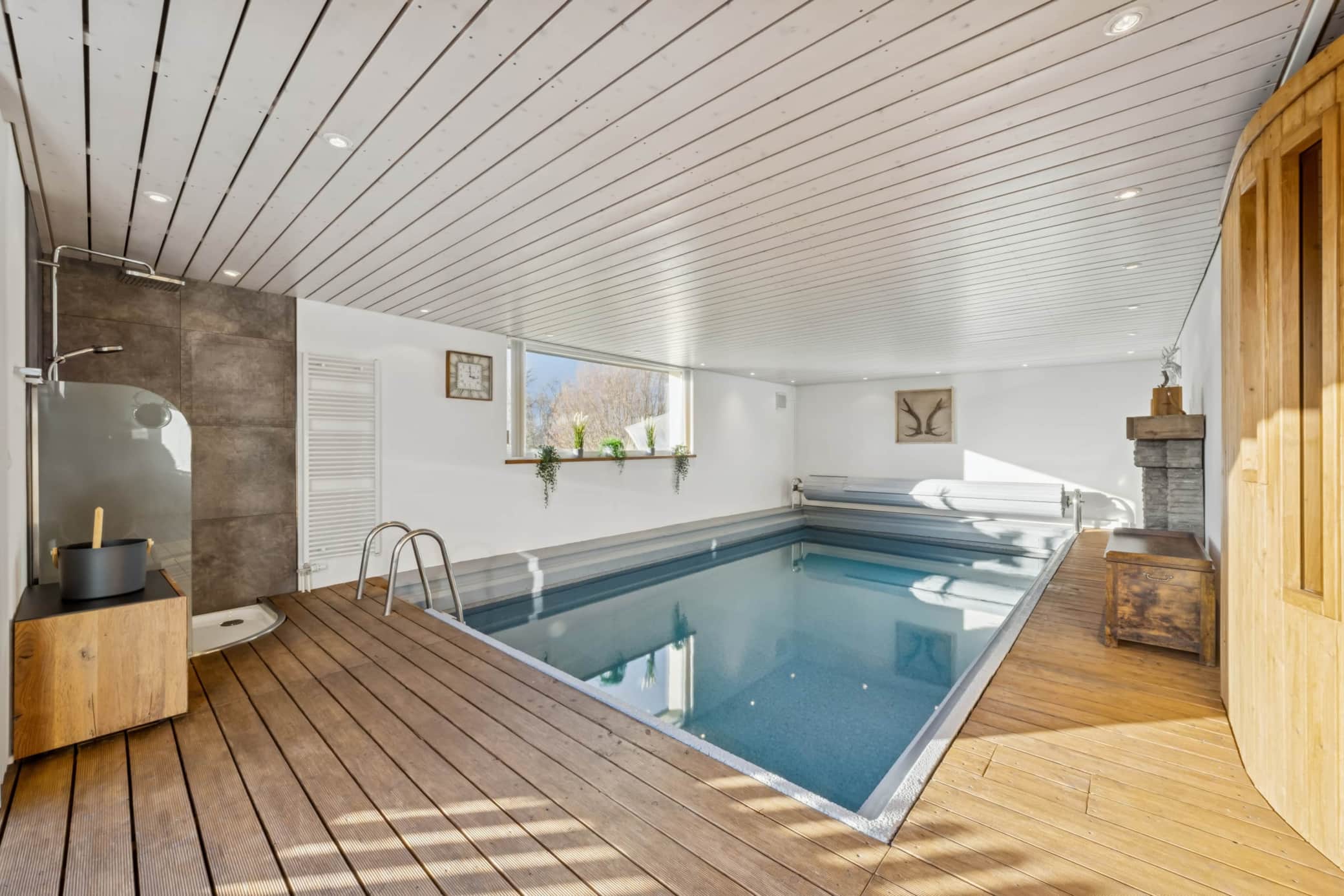 Der ganzjährig beheizte Indoorpool zur Alleinnutzung steht Ihnen während Ihres gesamten Aufenthalts kostenfrei zur Verfügung und lädt zu Ruhe, Leichtigkeit und Erholung ein.